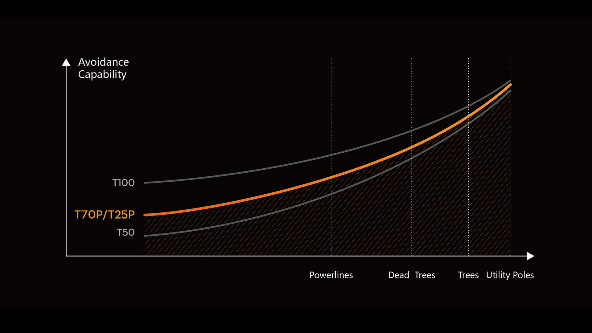 [9] W dobrych warunkach stabilna odległość wykrycia dla białego przewodu o średnicy 11 mm wynosi 19 metrów, a dla słupa energetycznego 25 metrów. Na rzeczywistą odległość wykrycia mają wpływ zabrudzenia soczewki, owady, krople rozpylonej cieczy, nawozy i inne obiekty unoszące się w powietrzu. Podczas lotów nocnych użytkownicy powinni oznaczyć przeszkody lub zmniejszyć prędkość lotu w oparciu o rzeczywistą widoczność, aby zapewnić bezpieczeństwo lotu.