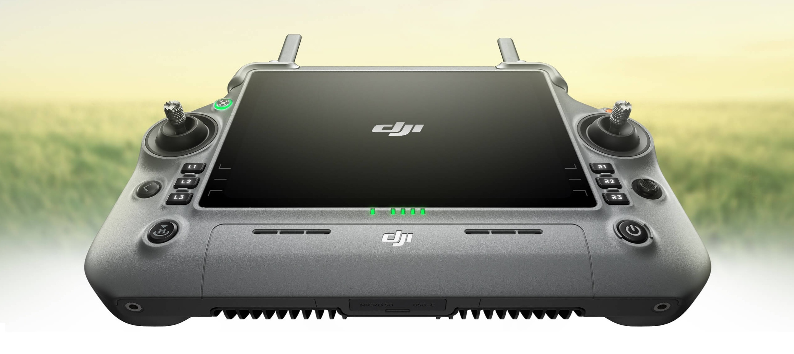 Aparatura sterująca DJI RC Plus posiada 7-calowy ekran o wysokiej jasności (wzrost jasności o 16%[4]), zapewniający wyraźną widoczność w świetle słonecznym. Zarówno żywotność baterii wewnętrznej, jak i zewnętrznej została wydłużona o 30 minut[4]. Nowe podświetlane przyciski ułatwiają obsługę w nocy, a konfigurowalne przyciski fizyczne zapewniają elastyczne sterowanie.