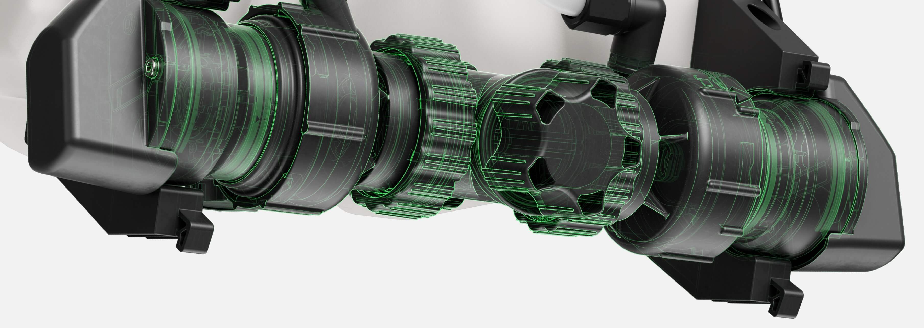Podwójne dyski rozpylające zwiększają żywotność elementu o 66%[4] i zapewniają bardziej jednolite rozmiary kropel, co przekłada się na lepszy efekt rozpylania.
