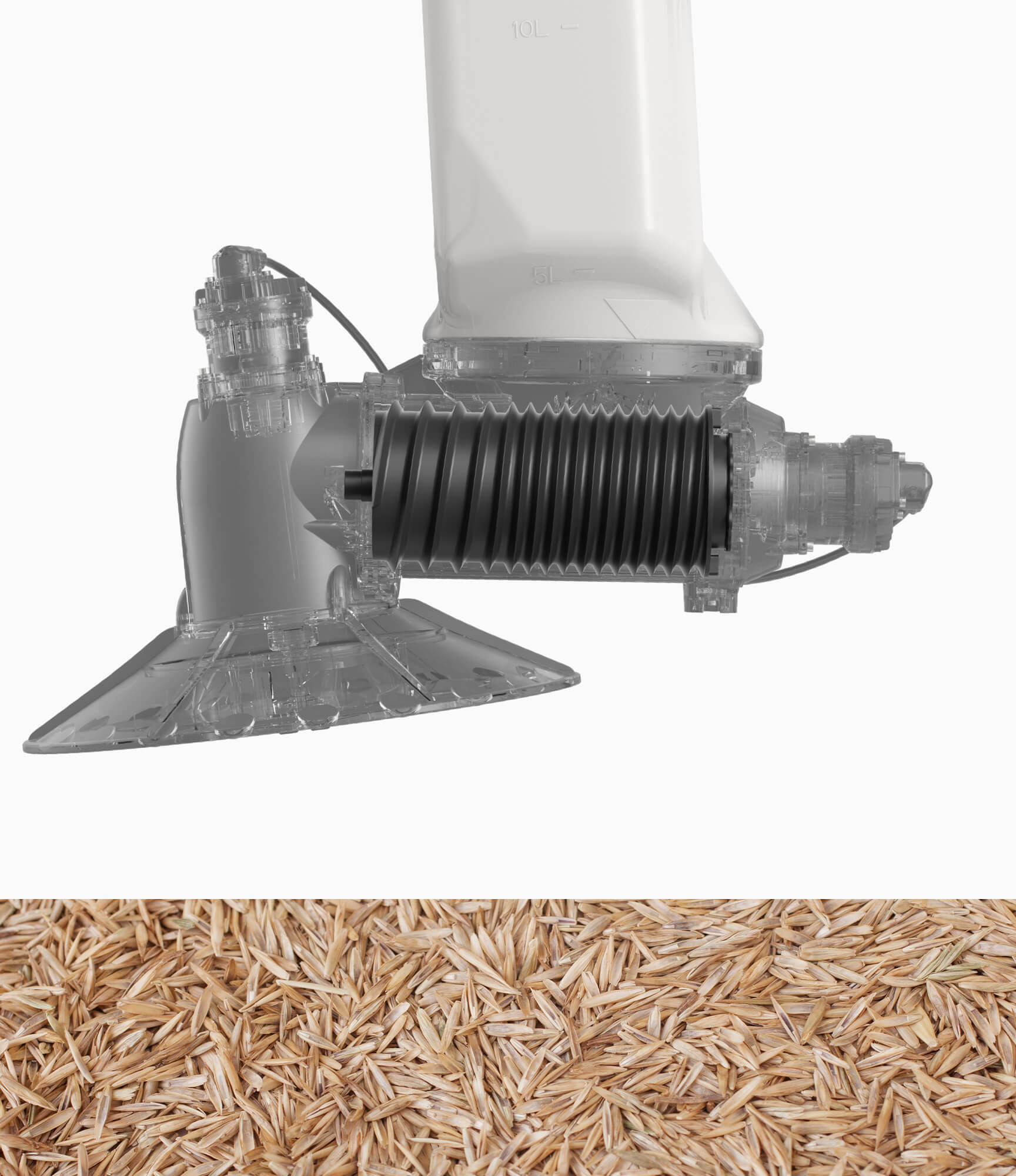 Dzięki nowej tarczy odśrodkowej system rozsiewu zapewnia równomierną dystrybucję z automatyczną kalibracją, ważeniem w czasie rzeczywistym, szablonami przechowywanymi w chmurze i dopasowywaniem podajnika w celu zwiększenia dokładności przepływu rozsiewania.