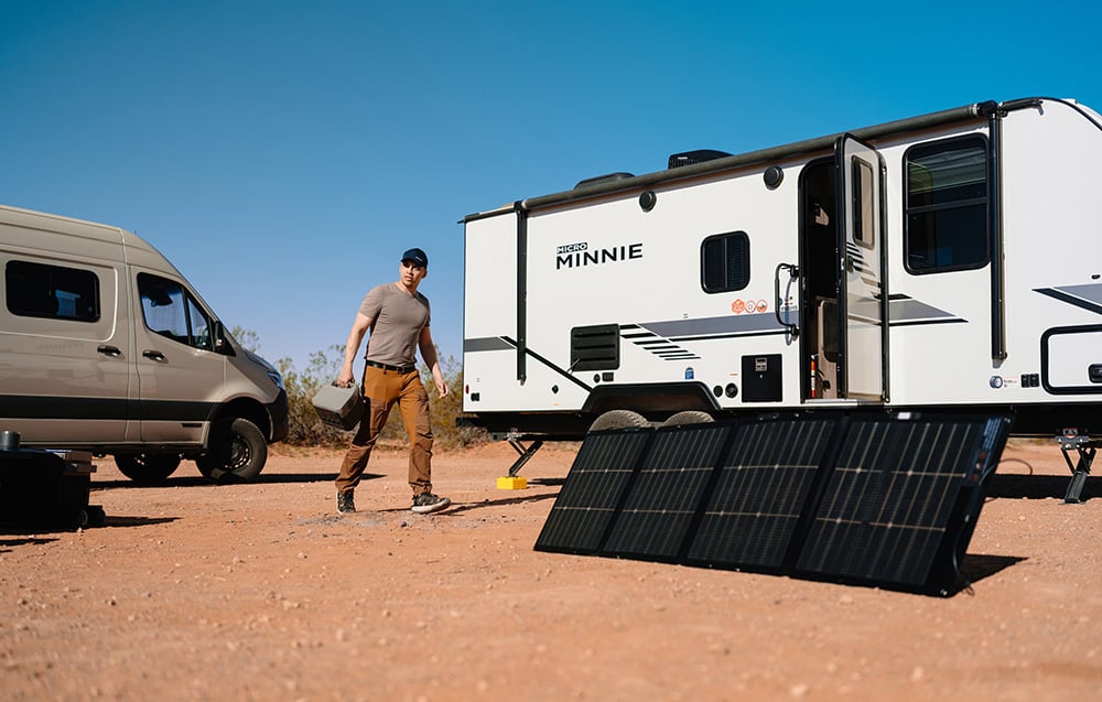 Dzięki przemyślanej konstrukcji panel łatwo się składa i nie zajmuje dużo miejsca – zmieści się w szafce, kamperze czy bagażniku. Wystarczy kilka sekund, by go rozłożyć i rozpocząć ładowanie. Wbudowane uniwersalne złącze solarne pozwala na współpracę nie tylko ze stacjami EcoFlow, lecz także z większością modeli dostępnych na rynku.