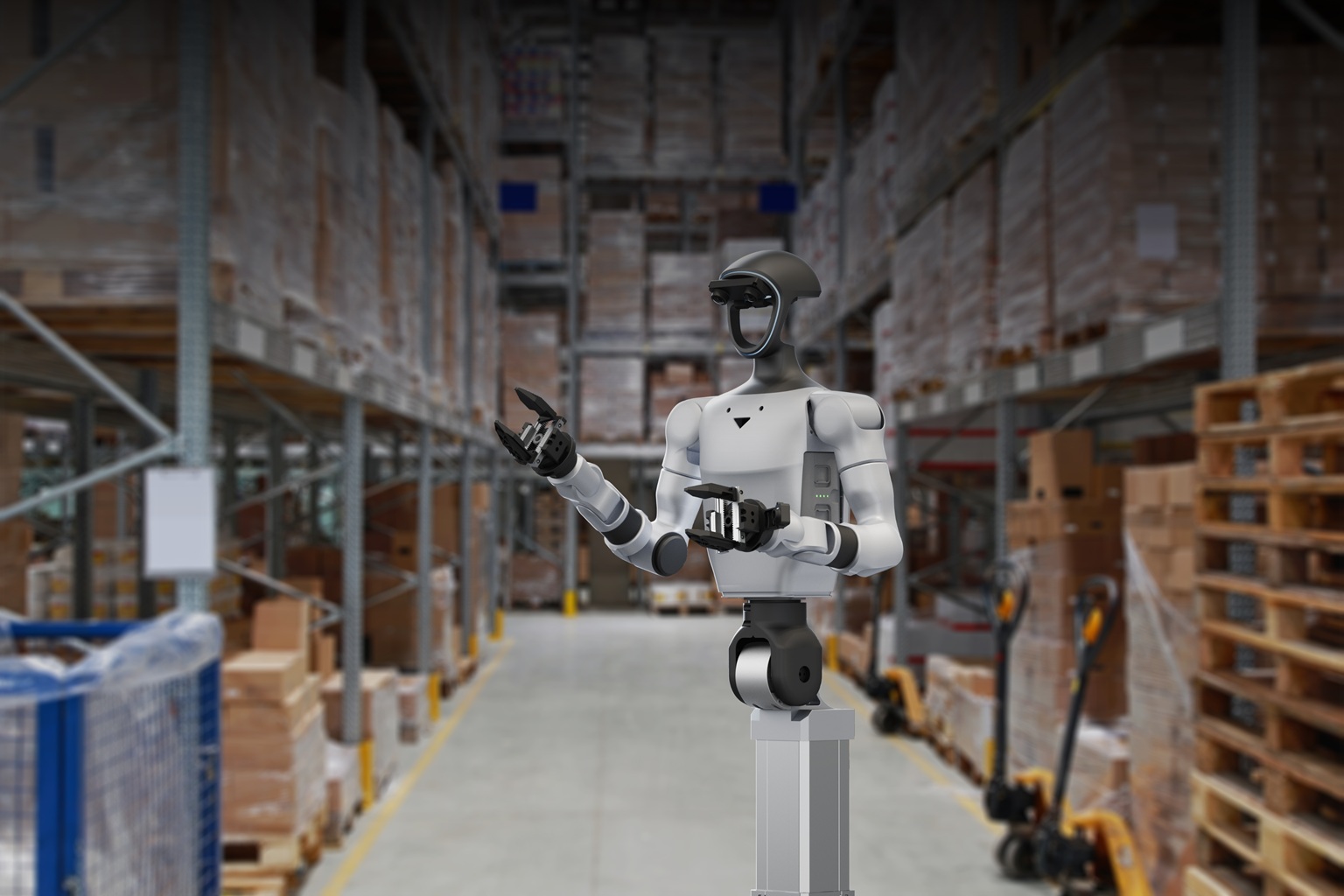 Głównym elementem Unitree G1-D jest górna część wielozadaniowego robota humanoidalnego G1, wyposażona we własne silniki, ruchome przeguby, enkodery i czujniki.